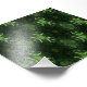 Dark green geometric design with light green accents.