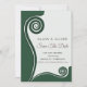 The flat card carries the message to save our wedding date. It is decorated with green fern frond swirls and are associated with new beginnings. Koru is the New Zealand Maori word for their symbol.