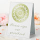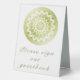 Add a graceful reminder to your reception décor with this Green Lace Mandala Wedding Table Tent Sign, designed to blend beauty with purpose. Featuring a delicate mandala with an intricate lace pattern and refined geometric design, this sign displays the message please sign our guestbook in elegant script. The simple layout and feminine design make it easy to read while enhancing your wedding decor. Perfect for wedding receptions, this table tent sign guides guests effortlessly while adding a cohesive, polished touch to your tables. Ideal for couples who appreciate timeless details, the blue mandala design elevates your guestbook table with subtle elegance.