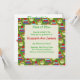A cute graduation invitation done in colours of green and red with cartoon turtles on it. It features a green background with colourful school books and girl turtles. Perfect for preschool, kindergarten, or elementary school graduation.