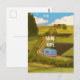 Green landscape train anime Cartoon adenture Postcard