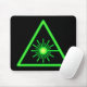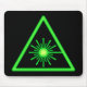 Black mousepad with bright green laser warning symbol.