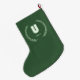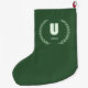 Green Laurel Wreath Letter U Monogram Large Christmas Stocking