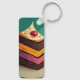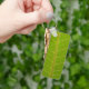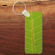 A charming metal rectangle keychain featuring a delightful combination of a green leaf and a cake design. Perfect for nature lovers and those who appreciate sweet things, this keychain adds a touch of whimsy to your keys.