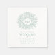 Circling leaf design green and white wedding napkins. Add your own couples monogram initials, name and wedding date in a sage grey green and grey on crisp white. Other colours and matching wedding items available. © Original leaf drawing and design by Sarah Trett for www.mylittleedenweddings.com on zazzle.