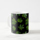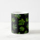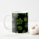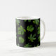 Green leaf closeup isolated on black background coffee mug