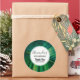 Party thank you stickers with a closeup photo of a green tropical leaf displaying some vibrant palm fronds.