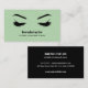 This modern and sophisticated business card design features a glamourous , minimalistic illustration of a woman's eyelashes over a stunning LIGHT GREEN LEATHER background with bold name or business name and title.