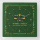 Green Leather Gold Justice Scale Vintage Frame Square Wall Clock