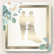 Green Leaves Flower Golden Frame Wedding Party Coaster