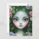 Green Leaves & Flowers Forest Girl Postcard