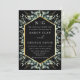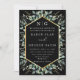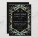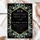 Green Leaves Gold Border Monogram Black Wedding Invitation