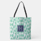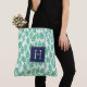 Green Leaves Pattern and Blue Monogram Tote Bag