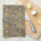 Green Leaves On Stems Repeat Pattern Blue and Gold kitchen towel