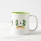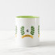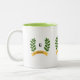Modern beautiful green leaves and golden ribbon on white Mug. Text can be personalised.