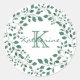 Green Leaves Watercolor Wreath Monogram Classic Round Sticker