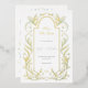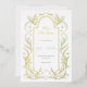 Wedding Save The Date Foil Invitation with a frame of elegant branches with green blue leaves. Hand drawn abstract delicate leaves on white background. Romantic floral nature background. Abstract nature leaf branches. Vintage spring or summer floral design. Botanical plot watercolor painting. Soft green botany Wedding Save The Date Foil Invitation. Green Leaves Collection.