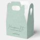 Hangover kit wedding favour box, whimsical minimalistic modern, customisable white script typography. The light green printed linen texture background adds a touch of an organic feel and classic elegance. Other colours are available.
