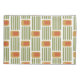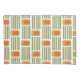 This pillowcase has a mid-century modern design made of five green lines and a gold rounded rectangle with an orange rounded rectangle repeated across the design.