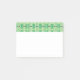 This Post-It notepad has a mid-century modern design of green vertical lines with rectangles above, repeated over the design.