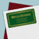 Add a special detail to your letters with this holiday address label featuring a geometric line border and the words "Merry Christmas" in a classic decorative font against a green background. Check out the matching cards and other holiday items here http://www.zazzle.com/collections/classic_decorative_holiday_collection-119101284257316622?rf=238364477188679314