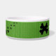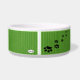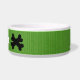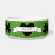 Pet food bowl in ceramic, with adorable green lined background, a black heart with banner for your dogs name, and black doggy cross-bones as the background design. Just choose the personalise option to add your doggies name! Too cute!