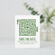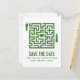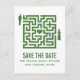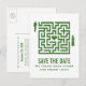 Quirky and fun Love Maze Save the Date Postcard in dark green featuring a maze with a heart in the middle and a bride and groom on either side, waiting to find each other and love. This sweet design is a charming choice for announcing your upcoming wedding! Easy to customise, simply fill in the details of your wedding in the text fields provided. Click on the "Customise It" button to find additional personalisation options.