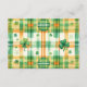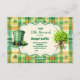 Design: Features a whimsical watercolor shamrock and gold horseshoe illustration, complemented by a green-and-gold colour scheme.
