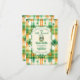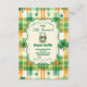 Design: Features a whimsical watercolor shamrock and gold horseshoe illustration, complemented by a green-and-gold colour scheme.
