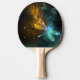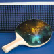 Flight of glowing, green, artistically drawn dragonfly with transparent green and yellow wings on glowing night background with marsh plants and fireflies. Glowing dragonfly.