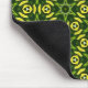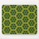 A geometric pattern in green and gold/yellow. The design consists of six sided stars in a kind of honeycomb pattern of geometric petal like shapes, which gives it a kind of magical look. Actually the design is based on elements of images of real flowers, so maybe it is a kind of magic.