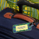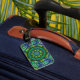 Make your luggage stand out on an airport carousel with unique tag designs! This magical, mysterious, mystical luggage tag features a brilliantly coloured three dimensional circular abstract pattern of kaleidoscopic curves and circles in green, blue, gold, turquoise and yellow. Customise the text on the reverse side with your personal information.