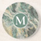 Green Mariposite Mineral Stone Pattern Monogram Coaster