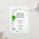 This is a fun way to invite your friends and family to your St Patrick's Day party. The background is a bright white with shamrocks or clovers in green scattered across. In the centre there is a white insert to frame your text. To the right there is a graphic of a green martini cocktail in a glass with a clover and a stir straw. A fun festive invitation.
