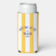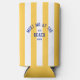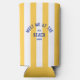 Meet Me At The Beach seltzer can cooler is for your group beach trip or get together. Yellow cabana stripes with blue distressed custom beach lettering. Personalise with the details of your beach trip... year and beach destination. Perfect for a family or friends beach get together or beach club bachelorette or as a memento for a past trip. Matching accessories available in Meet Me At The Beach Yellow Cabana Stripe Collection.