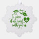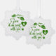 Beautiful memorial ornament. Green holy berry dog paws, snowflake, and text: "A piece of me went with you."