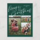 Green Merry Christmas Calligraphy Script 3 Photo Holiday Postcard