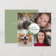 Personalise this Holiday Christmas flat card with four of your family photos. Customise the greeting and family name. Share your family's favourite images of the baby, pets, parents to add cheer and love during the Holiday Season. Featuring a modern wreath greenery illustration for a unique touch.