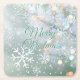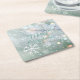 Green Merry Christmas Snowflakes Square Paper Coaster