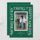 This modern festive holiday card features the words "merry everything and a happy always" framed around a single photo on the front. It has space for a second photo on the back. The front of the card also has space for your name and the year.
