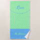 Green Mid Century Blue Retro Dots Summer Love Beach Towel