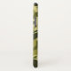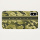Stylish modern phone case featuring a trendy military camouflage pattern in shades of green; the vertical green band is customisable with your name or text of your choice in light green lettering.