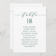 This is a customisable table number seating plan. It features a green whimsical script and classic typography. Personalise by adding your own details. This minimalist table seating plan is perfect for weddings, baby showers, bridal showers, birthdays, and so much more.
