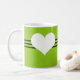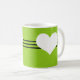 Sweet and charming Modern Heart Mug featuring a chartreuse green background and a cute heart and striped border. This cute and girly mug is perfect for enjoying your favourite hot beverage! Customise with the text of your choosing. Click on "Customise" to find additional personalisation options.