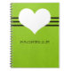 Sweet and charming Modern Heart Notebook featuring a chartreuse green background and a cute heart and striped border. This cute and girly notebook will allow you to keep notes and reminders handy with style. Customise with the text of your choosing. Click on "Customise" to find additional personalisation options.