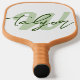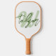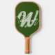 Pickle ball paddle with your name and family name initial in green and light grass green. Balls reads Taylor W or personalise with your own name and initial. Designed by www.mylittleeden.com on zazzle.