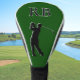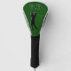 This modern golf driver head cover has a black golfer silhouette on a green background and an editable monogram for personalization. Give this to your father, husband, or anyone else who you want to give a little present that relates to their hobby. Cute and useful, too!