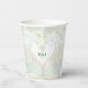 Create green monogram wedding paper cups! A romantic tree with heart accents provides a subtle backdrop for these wedding cups. Customise the front with your desired couple monogram and wedding date. Part of the Romantic Tree Design collection. Use the template to create your own monogram wedding paper cups.