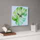 Green Monstera Leaf Botanical Tropical Blue Square Wall Clock