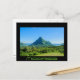 Postcard with the green volcanic Mt. Rotui surrounded by Cook's Bay and Opunohu Bay from Belvedere Viewpoint on the tropical island of Moorea, near Tahiti in the pacific archipelago French Polynesia with a black border and the text: 'Moorea'.